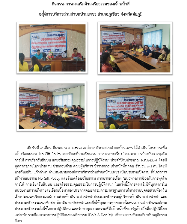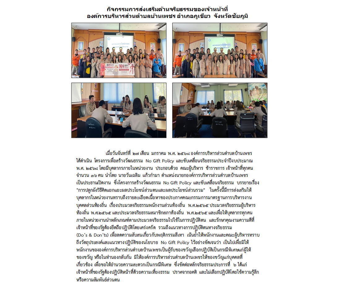 อบต.บ้านเพชร ร่วมต้านทุจริต ประกาศนโยบาย No Gift P...