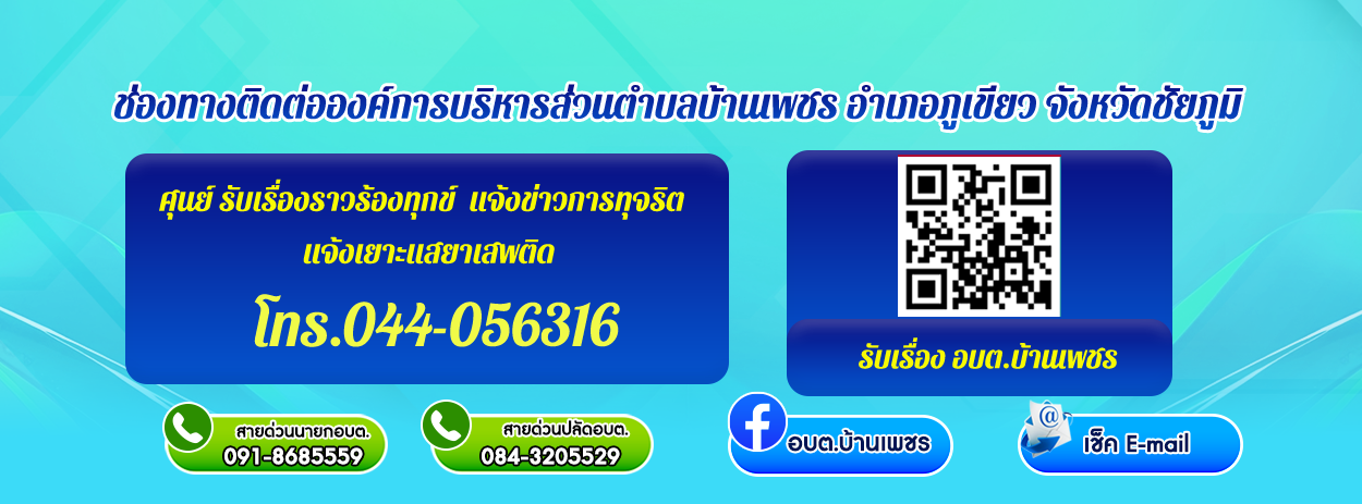 องค์การบริหารส่วนตำบลบ้านเพชร 144 หมู่ที่ 6 ตำบลบ้านเพชร อำเภอภูเขียว จังหวัดชัยภูมิ 36110