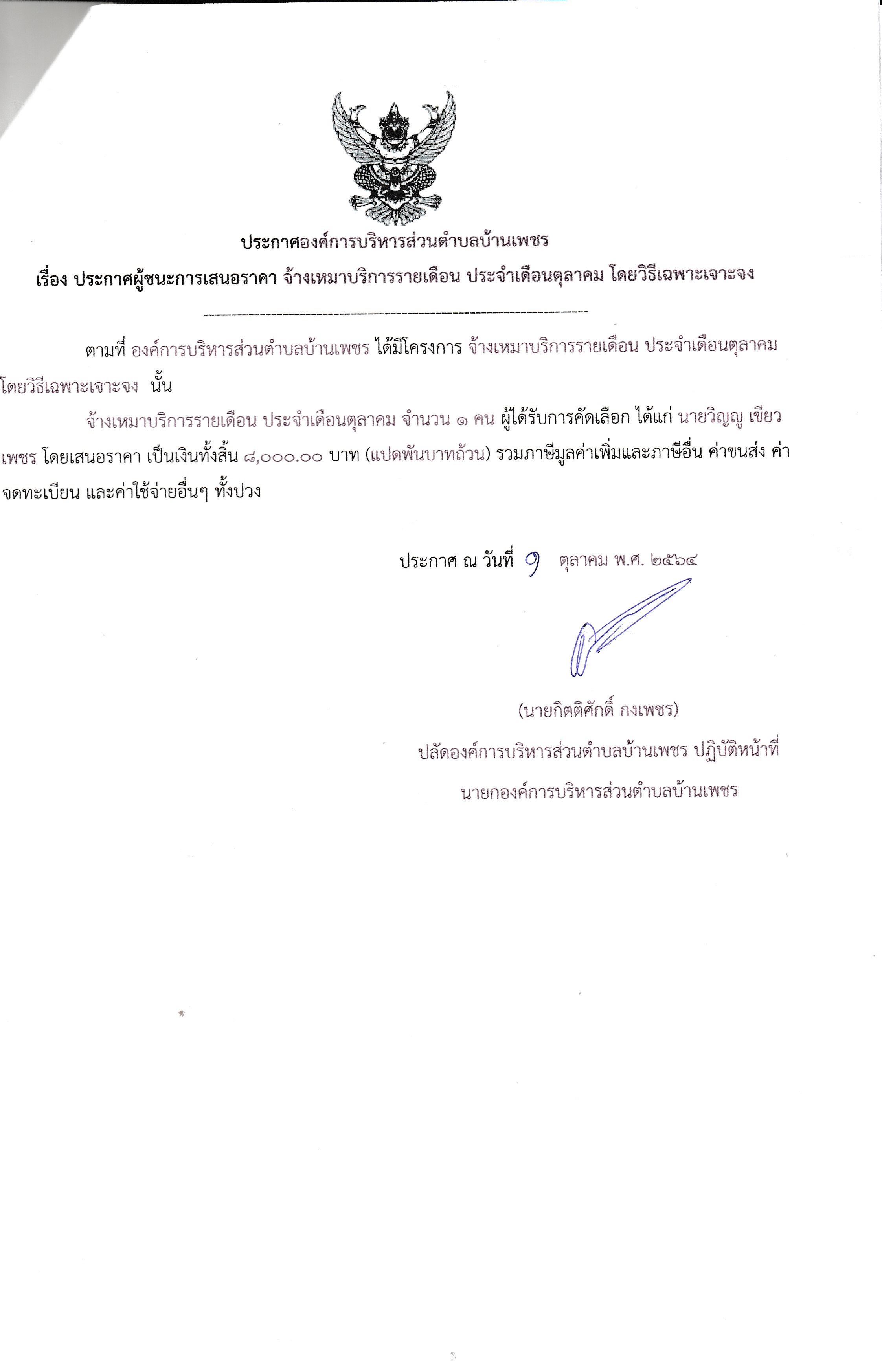 ประกาศประมูลโครงการก่อสร้างอาคารเอนกประสงค์เพื่อใช้เป็นสำนักงาน อบต.บ้านเพชร ด้วยระบบอิเล็กทรอนิกส์ 1/2 |