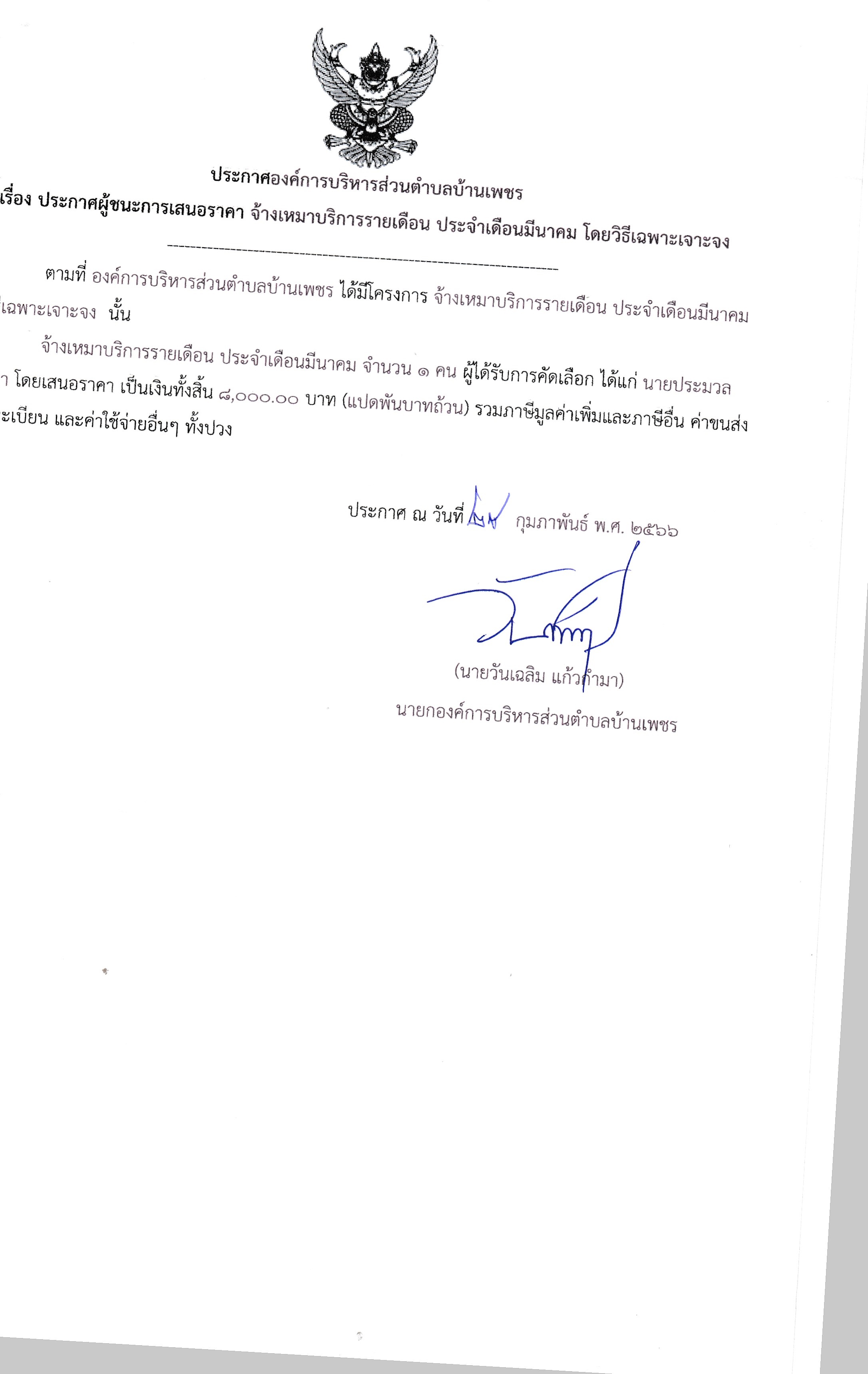 ประกาศผู้ชนะการเสนอราคา จ้างเหมาประกอบอาหารกลางวัน ศพด.เดือน มีนาคม 2568 |