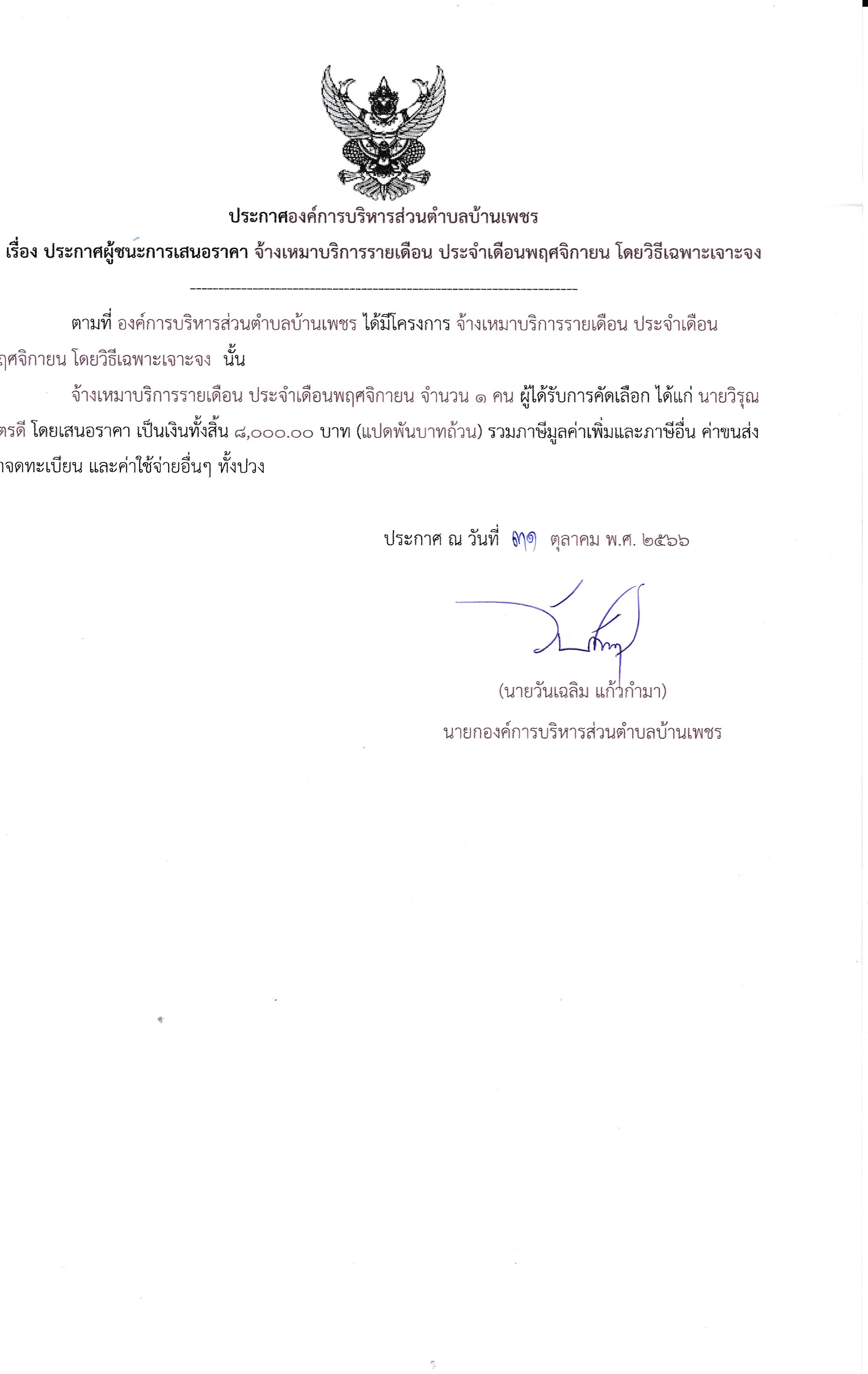 ประกาศผู้ชนะการเสนอราคา จ้างเหมาประกอบอาหารกลางวัน ศพด.เดือน พฤษภาคม 2568 |