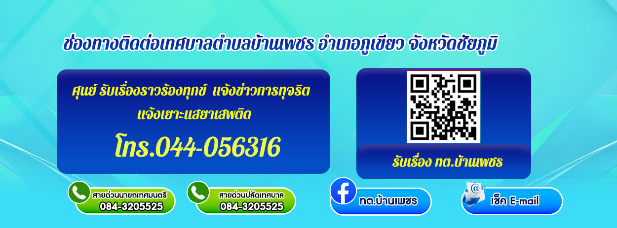 เทศบาลตำบลบ้านเพชร 144 หมู่ที่ 6 ตำบลบ้านเพชร อำเภอภูเขียว จังหวัดชัยภูมิ 36110